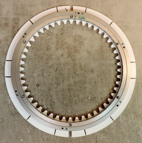 mounting holes. First, verify that the bearing is centered on the ring. measure the tooth edge to the inside of the inner race and verify that it's the same all around. You can do the same for the outer bearing to the outside edge, just put tape on the bearing to hold it in place. Then remove just one of the #6 screws. Use the bearing as a guide and drill out the hole in the Head Bottom ring to fit #10 (Use an undersized drill with tape on it to avoid creating aluminum shavings that might get into the bearing! - remove the bearing and complete enlarging the hole to #10 clearance). Then replace the bearing on the ring, use a #10 screw in the enlarged hole. Repeat the process with the #6 screw that is on the opposite side of the circle. Then so the same for the other sets of holes. Your Mileage may Vary. This 'process' is not tested (yet). If anyone has suggestions on a better process please let me know! |