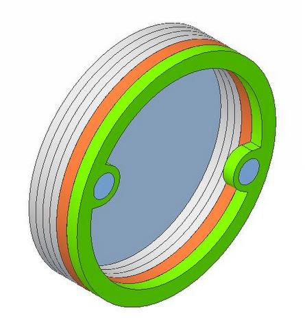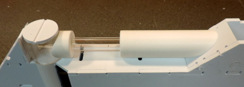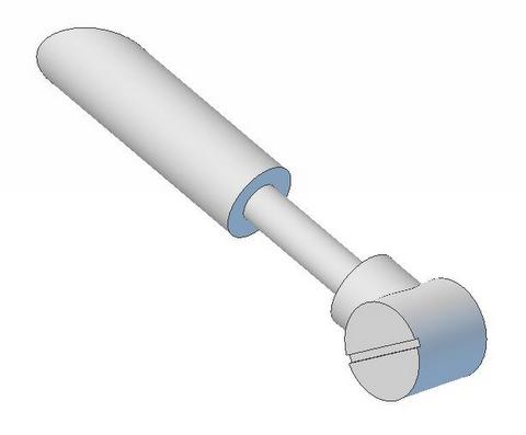 ![]() | The Leg strut is composed of 5 parts. The major three are shown to the left The central component is simply a .625 in dia cylinder. For simplicity, I'm going to cut that from an acrylic tube. The other two parts are round trim pieces that complete the appearance of a cylinder extending across the leg. (see below) The remaining Leg Strut Upper and Lower parts will be resin castings. |