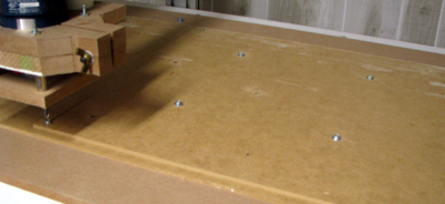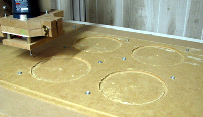 ![]() Using the router to 'drill' the hold down bolt locations.  |