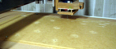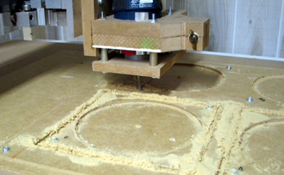 For my first set of cuts I used a 1/4 inch router, feed rate of 30 ips, making one .175 cut in MDF paneling.
