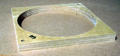 ![]() All the squares cut and dust cleaned up.  | (not shown) - lightly sand the edges to remove the MDF and paneling 'fuzz'. Now for the real testing. The reason for cutting 4 circles and squares. Stack all 4 circles using a router bit as a shaft. You did remember to put an orientation mark n the circles? [I didn't! - damm...] Rotating the circles relative to one another will quickly tell you if they are round or not. Stack all 4 squares. Check for alignment. Then rotate the 2nd square 90 degrees, the 3rd 180 degrees and the 4th 270 degrees. [An additional quarter turn on each level of the stack]. Again, you should be able to tell if you've got squares. The edges should line up perfectly. If the edges don't line up go back to the alignment section and check everything again.  |