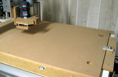 ![]() Just glue the short risers into the MDF. Make the holes in the CNC table oversize to clear the glue bead. |