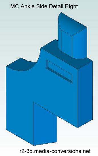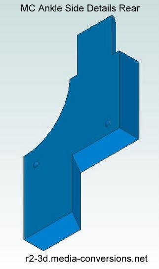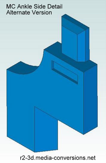 | The Media Conversions Ankle Side Details have been modified. There are two mounting holes in the back of the parts. These are used to align the parts using a piece of filament as a locater pin while the glue sets. You can download a template for the mounting holes with this link. Locate the template on your ankle, center mark the hole locations, drill a small hole in the ankle to match the filament size. For those of you who like your droid to look just a little different than every other R2 an alternate version is available. | |