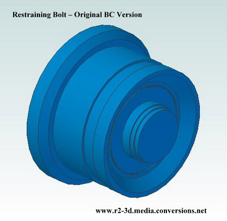 Bolt. This is the CS:L Restraining Bolt. Click on the image to open a 3D .pdf version. You can download a model of the CS:L Restraining Bolt from the Astromech 3D file Droidwiki: https://astromech.net/droidwiki/Restraining_Bolt |