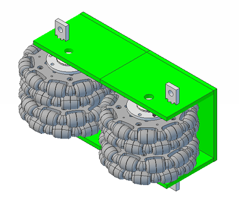 VEX Robotics posted this on it's Omni-Directional Wheels web page: "New for the 2019 FTC / FRC season, we've redesigned the 4” Omni-Directional Wheel to have a similar construction style to our 3.25” Omni-Directional Wheel. We decreased the number of rollers, to reinforce the body and improve the strength during sideways impacts. Don’t worry, it’s only a little wider than the current 4” Omni-Directional Wheel, and should still fit anywhere you were currently using a 4” wheel before". [emphasis mine]. Well, that's not quite true!!! The V1 Omni Wheel was 1.344 wide or 2.688 for the pair (not allowing for the spacer between them) while the V2 Omni Wheel is 1.53 wide or 3.06 for the pair (also not allowing for the spacer between them) and will be an impossibly tight fit in the 3.1 space of the SAK Center foot. [follow the links above for copies of the original VEX drawings]. There are several options. First, if you like the V2 version of the VEX Omni Wheel, you can use just a single wheel set front & back. You'll need to revise the spacers on the bolt/axle to center the single wheel in the SAK mounting. It won't provide the same stability or smoothness that a 4 wheel center foot would have. The other alternative is to find another Omni Wheel supplier. What follows is the list of suppliers that I've researched. If you just want to see the "solution" jump here.| Left: