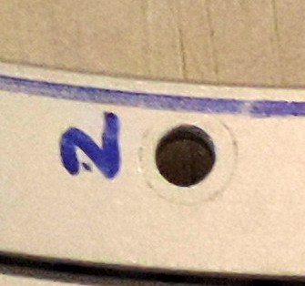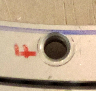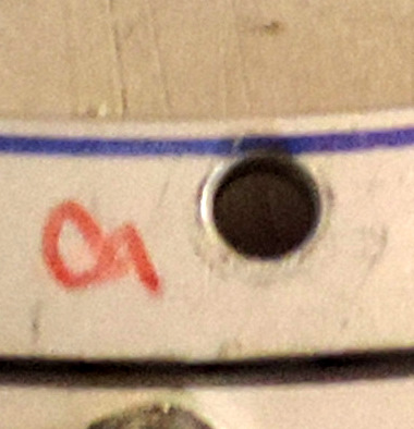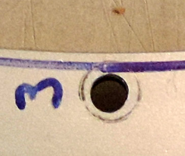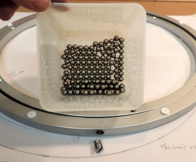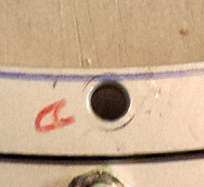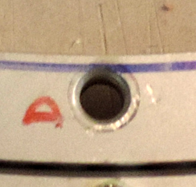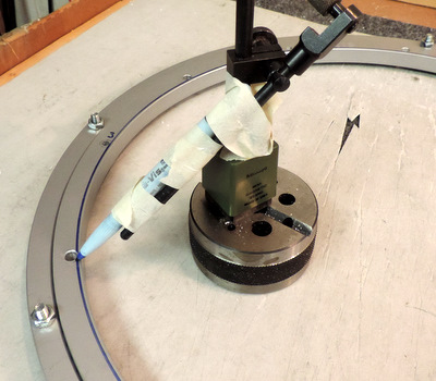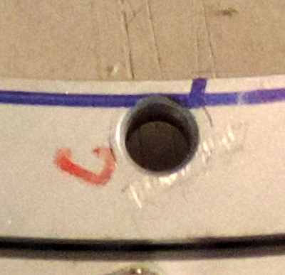 I turned the bearing over and rigged up a marker to draw a line on the bearing. The 10-32 holes are numbered, the larger holes lettered. |