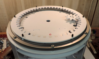 Rockler bearing mounted to Ring4, Internal drive gear slid onto 1/4-20 bolts. |