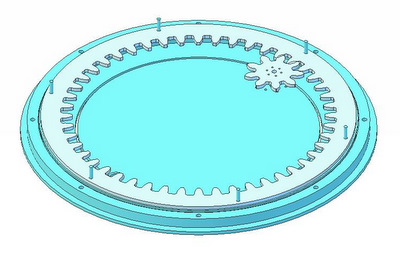 gear drive. There's nothing new in the design of this part. What's not shown, and is a work in progress, is a dome ring design that will accommodate rings of varying sizes and provide a clean mount for the dome itself. Note: the Pololu gear drive motor & the Rockler Bearing are shown for illustration. I do not include mechanical parts in my parts packages. |