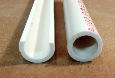 I'm starting with 1/2 inch schedule 40 PVC pipe with an edge cut off. |