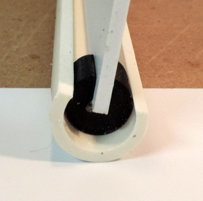 for this 'proof of concept' test I only used guides at the top & bottom of the sheet. In the actual core design the guides will be installed at ring locations on the frame. PVC pipe will be used on each side of the area where the removable back panel will be as well as other locations on the frame. One lesson from the proof of concept: The edge of the guide needs a slight taper to make inserting the core easier! Even though it doesn't look it, it's not possible to 'pop' the guide out of the pvc pipe by pulling on the plastic sheet! |