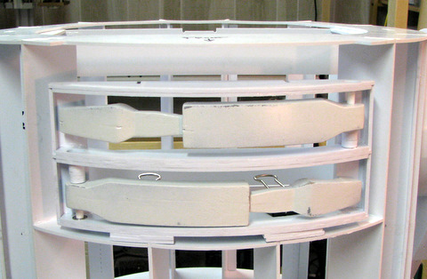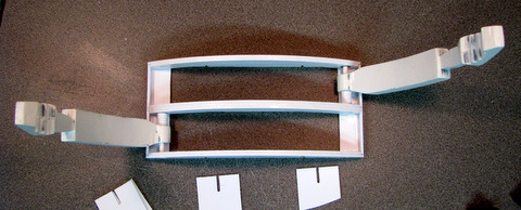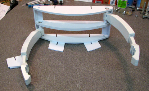 ![]() The Bushings shown here were made from layers of plastic glued together. They came out poorly. Get tubing to fit over the .25 shafts the Arms are mounted on. |
