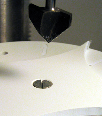 ![]() Using the scrap as a guide, set the drill press depth gauge to the depth of the countersink |