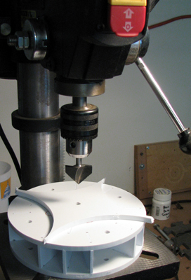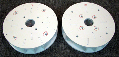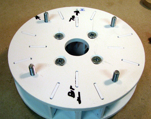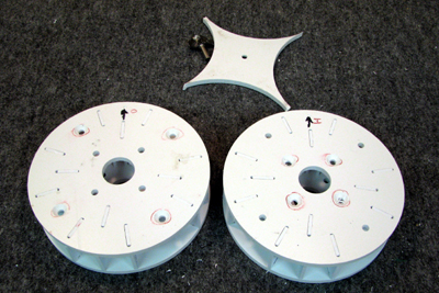 ![]() With the scrap now under the hub, drill out the holes you marked on each side of the hubs. |