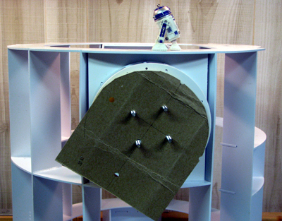 ![]() Each shoulder plate has a locater hole that marks the top of the droid's shoulder. while the plates have a symmetry it's convenient to orient them all the same direction. |