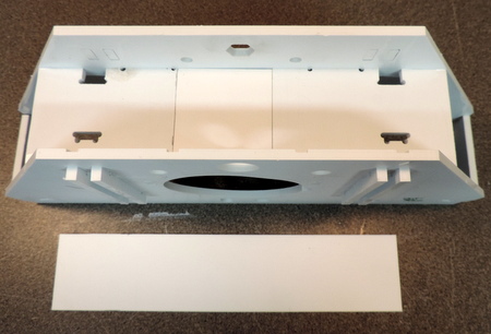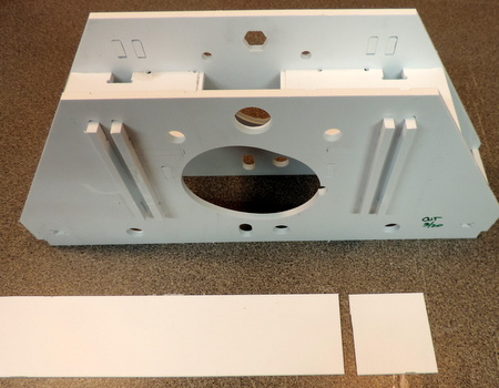 With the .040 filler panel cut to size - glue it in place. | Next install the 4 ribs and the filler rib with the mating slots. The small ribs should be slightly below the height of the panels. |
