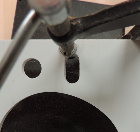 drilling a hole for the tensioner guide screws in the edge of the