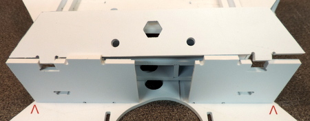 | Now place the other two filler panels in position. Make sure the one with the Hex hole lines up with the side panel ! | |