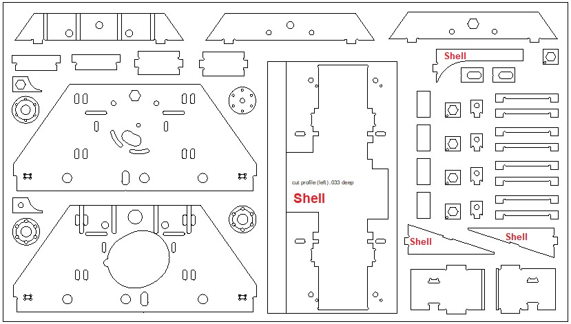 | This is the drive structural panel from the Drive assembly instructions. You'll need the 4 pieces marked Shell to assemble the brace that goes inside the shell. ![]() |