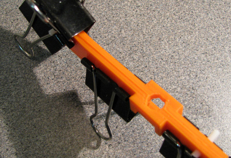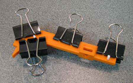 brace, which has to be assembled from components Above: Use the supplied pieces of filament as alignment pins. After dry fitting, apply glue and clamp. |