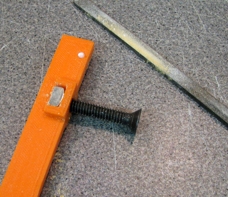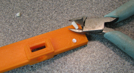 getting glue in the bolt threads. (use a silicon rvt glue) At the same time, install a square nut into the shell nut traps (both here and into the vertical brace (the 3D printed orange one) |