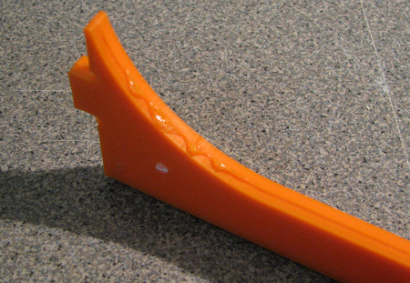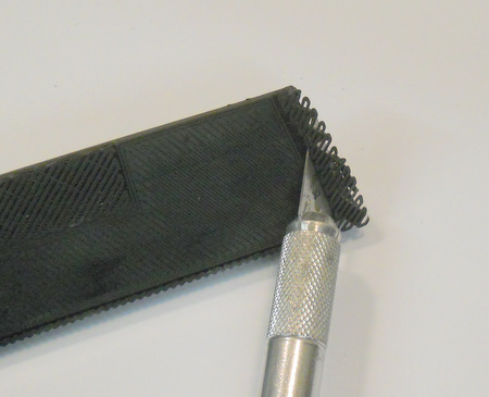 support on the edge Above: use your favorite cutting tool to separate the support structure. It's deliberately flimsy and should separate easily. |