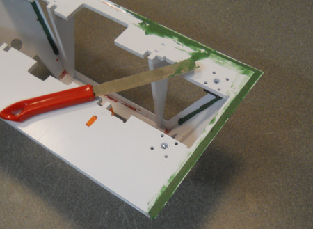 top edge, and the wedge section. Right: clean up any rough surfaces with a file. You can be aggressive on the wedge area, it's on the inside of the apron. |