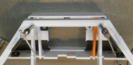 lined up by using a bolt (orange) and using the open bolt hole (white) Above: clamp the white vertical brace and then use Weldon #3 and then Weldon #16 to anchor the braces. |