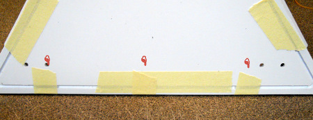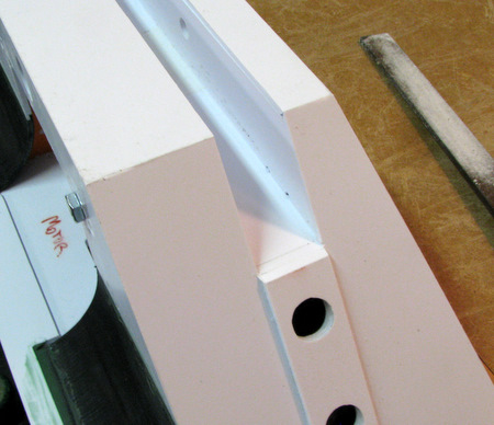 Clamp the trim strip in place, remove the screws and put a few drops of Weldon #3 in the holes to hold the strip in place. |