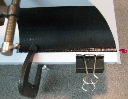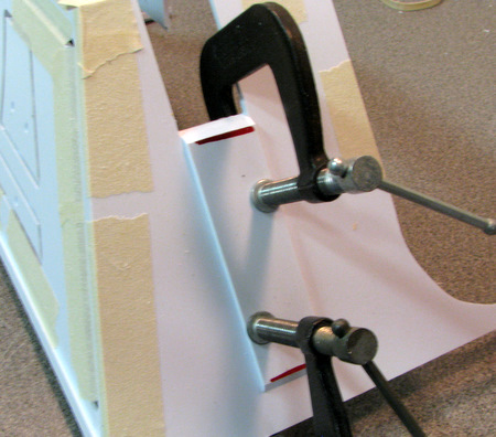 affected by the glue will work. Again, clamp the trim strip in place and then apply some Weldon #3 to hold the parts in place. |