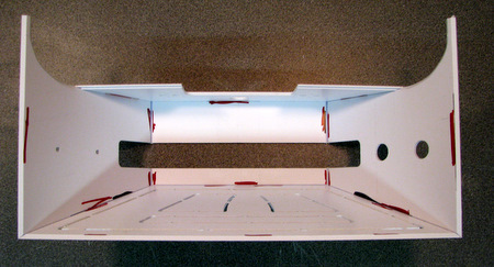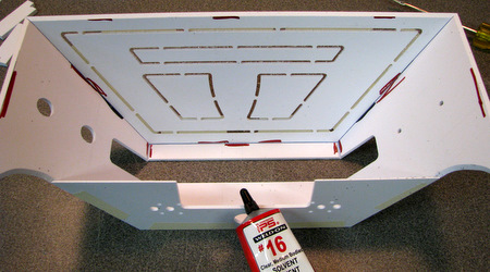 Flow Weldon #16 into the internal joints of the shell. Now you know why we put tape over the full length of the joints! |