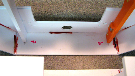 with the shell glue dry, put the drive back in and mark the location of the top of the vertical braces. |