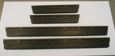 | Note: the curved end parts have proved troublesome to print without using Brim. The parts supplied may have Brim still attached. The parts shown here have had their brim's removed. For more information on Brim see the 3D Parts Care & Finishing article. | |