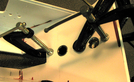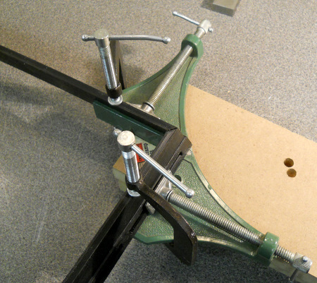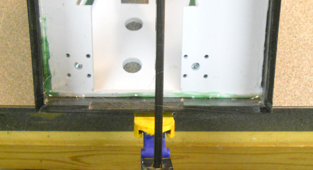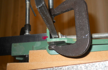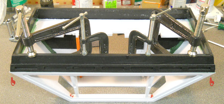 Once the shell joints are dry clamp the brace in place. Don't clamp too tightly as you can distort the frame. See later! |