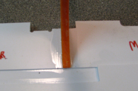 brace, which has to be assembled from components Above: Use the supplied pieces of filament as alignment pins. After dry fitting, apply glue and clamp. |