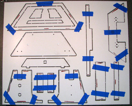 the frame to reinforce the tabs. Right: lay the shell parts out with the bevels down |