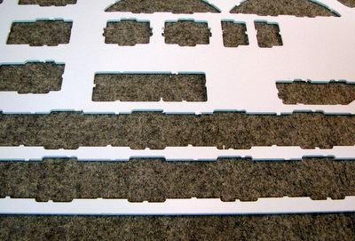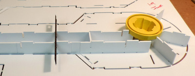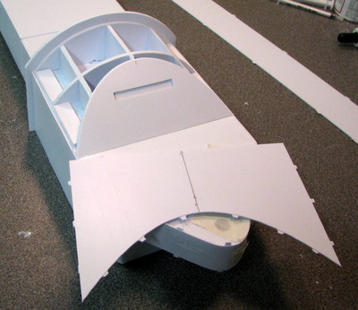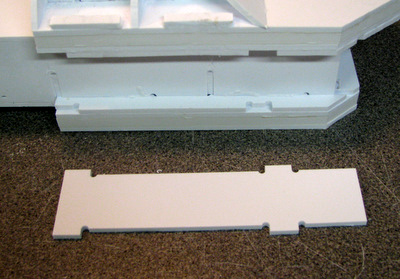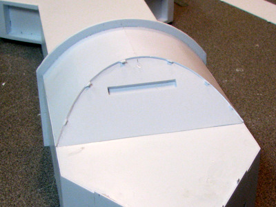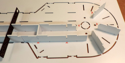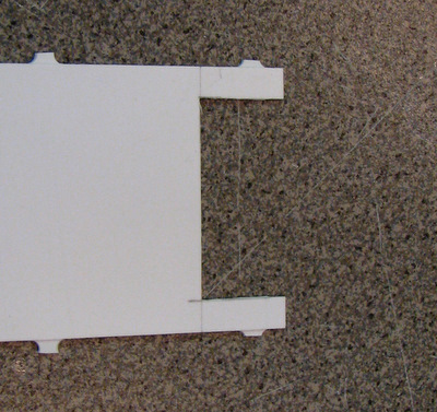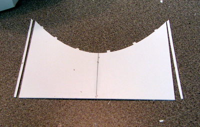 Update Pix Remove the tabs on one of the long edges. When you glue this piece in place line that edge up with the edge of the ankle curve piece. That edge will be the joint between the side and the curved skin. Work carefully. |