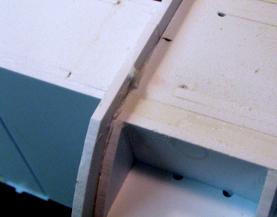 Clean up any glue seepage that might interfere with the skins. Note the tight joint between the parts. |
