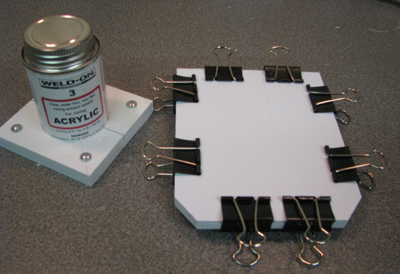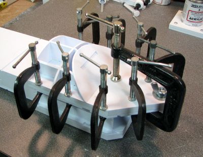 Repeat the process for the second layer of skin. I switched from Weldon #16 (syrup consistency) to Weldon #3 (water consistency) to get a better bond between the two flat surfaces. |