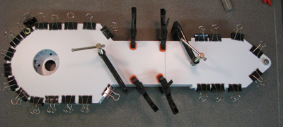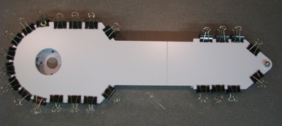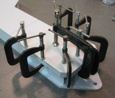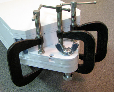 ![]() Apply your favorite cement, mate outer layer with the inner box assembly and clamp. Note the use of the bolt to insure alignment. |