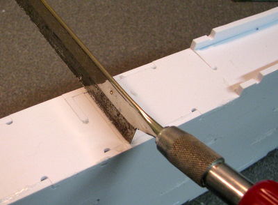File the edges down so they match the curve. The skins, when we get to them, will have a larger surface to bond to. |