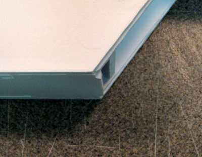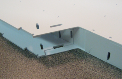 There are slots in the outer leg surfaces (just placed for photo) and a matching slot in the leg riser but no slot in the edge of the inner layer |