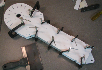 process with the Leg Top Inside Outer layer. Note the use of 1/4 inch bolts this time at the shoulder joint for alignment. |