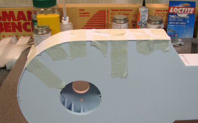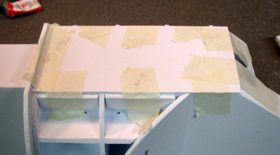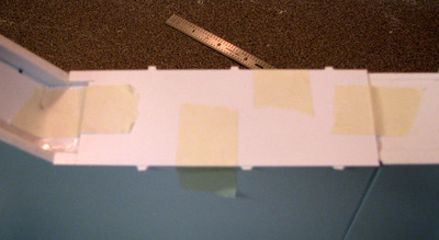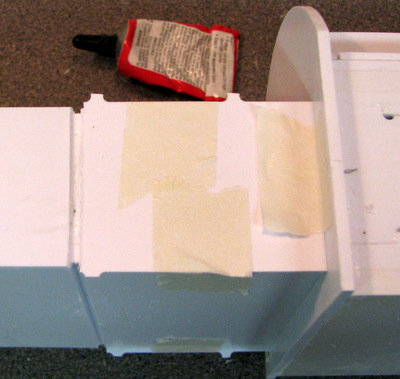 With the glue in place tape the just glued part securely making sure the overlap on both sides is centered |