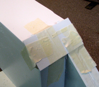 Above: Check the fit then glue in place Right: Tape while the glue dries |