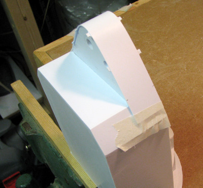 the fit, trim again if necessary Left: When the fit is correct, glue the skin in place and tape till the glue is dry. |