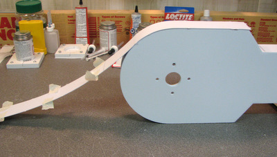 Glue the Ankle Curve Assembly in place. Use a 3/8 bolt for alignment. Clamp for a strong structural joint. |