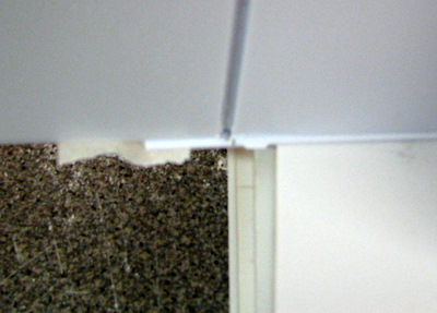 Left: Trim the tabs off the top edge. Mark a centerline. Check the fit. Above: Mark the edge locations and trim both sides. Take equal amounts from both sides if you can. |