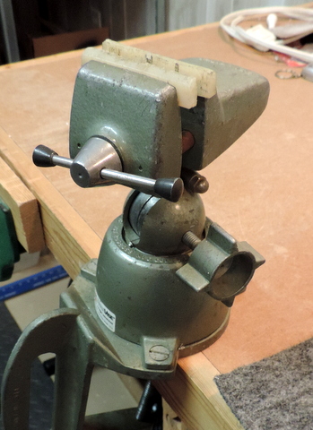 Above: clamp the halves together, insert a 1/4 in shaft (or a bolt) to act as a fourth alignment point Right: there's a hole for an anchor screw to hold the Utility arm in place but still permit some up/down adjustment note! for better access move the hole |