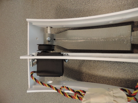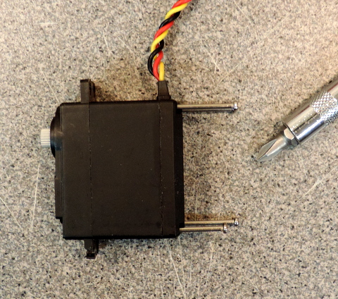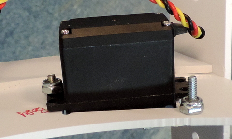 Install a #6-32 x 5/8 screw in the single hole on the opposite end of the Servo. This will be the pivot for the Servo. Tighten all the way and then back off ~ 1/4 of a turn. The Servo should pivot freely. |