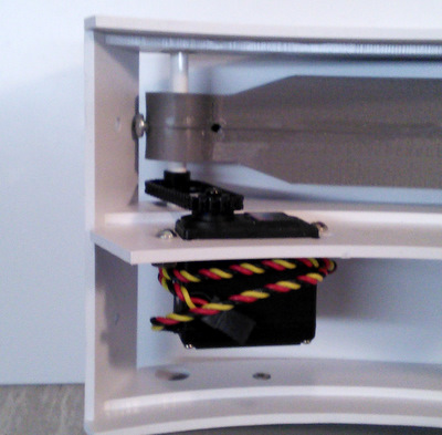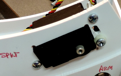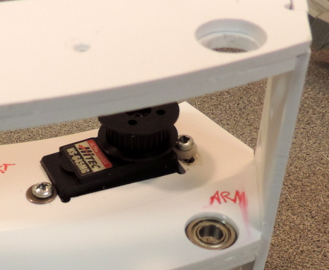 Utility Arm Box (only partially assembled) with a servo shown. |